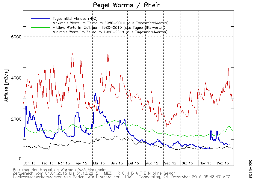 Alleen eind november en begin december wisten enkele regengebieden tot dit deel van het stroomgebied door te dringen en waren er korte intermezzo‘s met wat meer neerslag en meer water in de rivier. Er viel toen ook wat sneeuw, maar die is vanwege de extreme warmte van de laatste weken tot op een hoogte van ca 2000 m al weer gesmolten. De Middengebergten in Duitsland en Frankrijk zijn dan ook geheel sneeuwvrij.